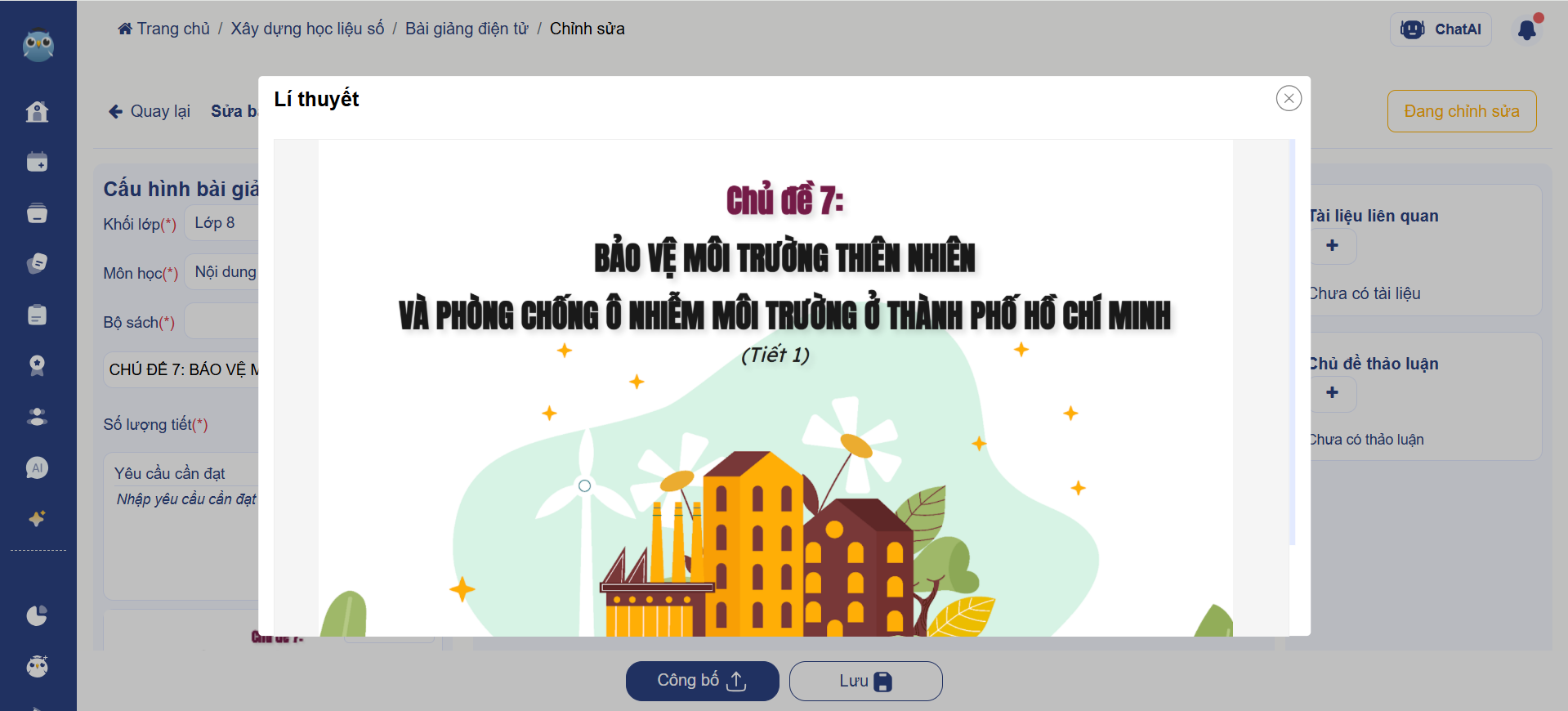 - Hệ thống hiển thị tạo bài giảng thành công.