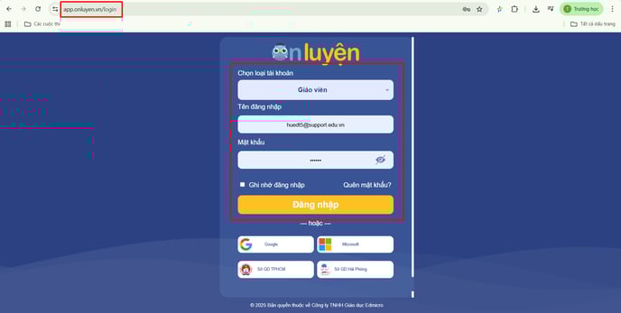 - Thầy cô mở trình duyệt Google Chrome, sau đó truy cập vào website: app.onluyen.vn