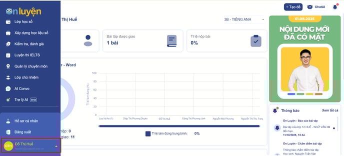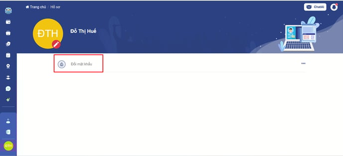Bước 2: Tại thanh menu chính, Thầy/cô chọn mục tên của mình, chọn "Đổi mật khẩu"