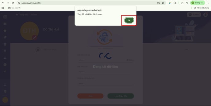 Thầy/cô chọn "OK" để hoàn tất các bước đổi mật khẩu