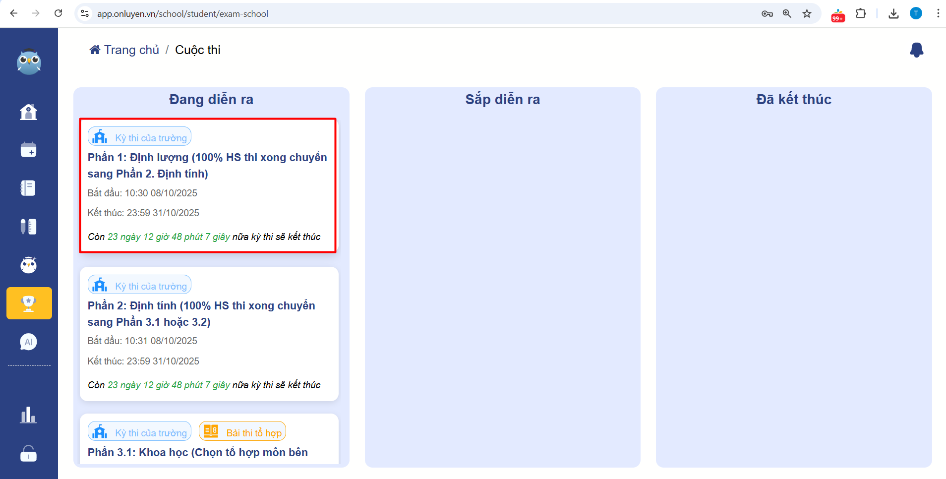 Bước 3: Chọn "Cuộc thi đang diễn ra"