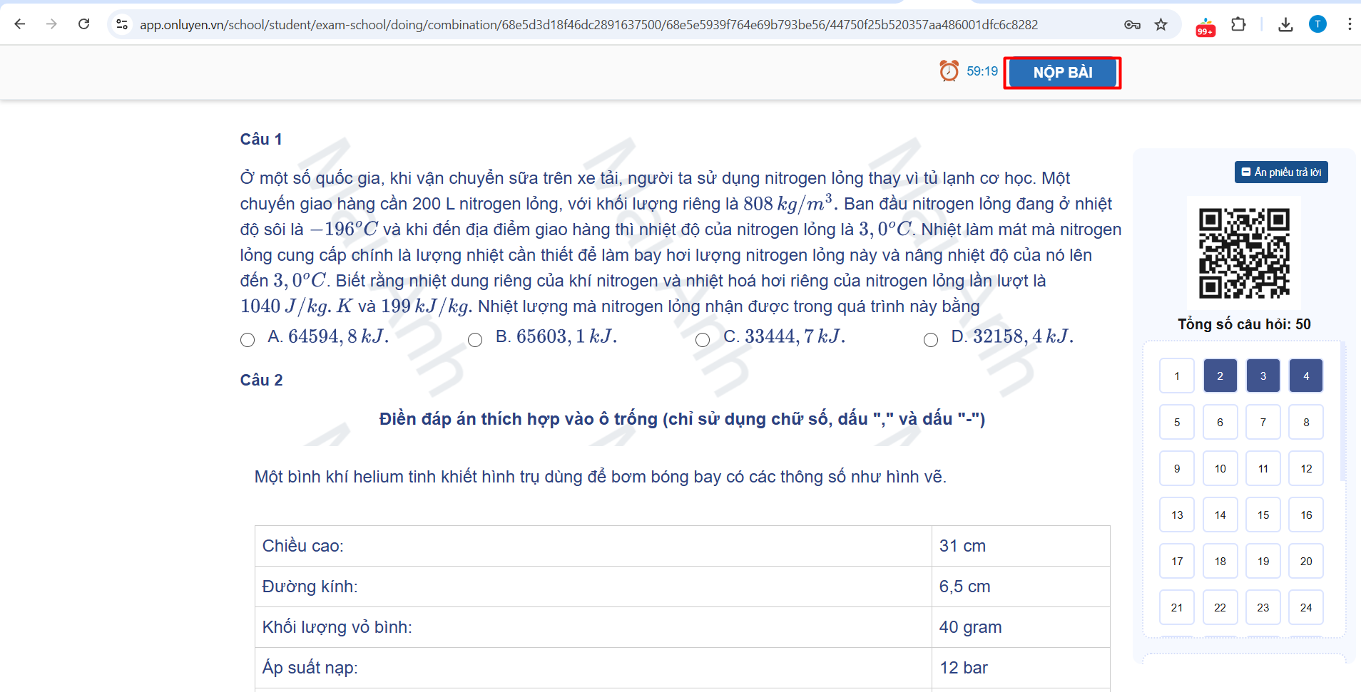 Lưu ý: Sau khi nộp bài, hệ thống sẽ hiển thị mã QR bài thi, học sinh lưu lại mã QR để phục vụ quá trình phúc khảo (nếu cần)