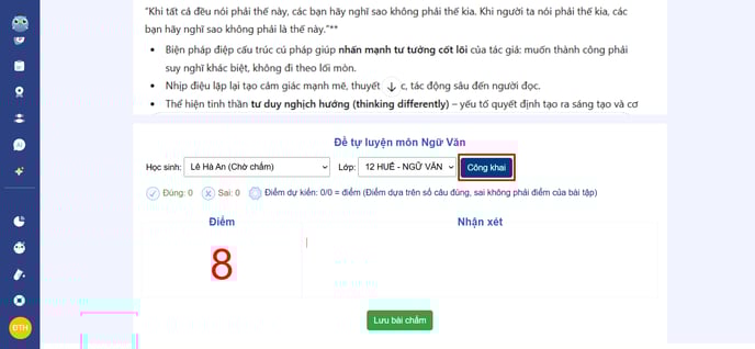 Bước 8: Sau khi chấm bài xong cho cả lớp, Thầy/cô chọn “Công khai”