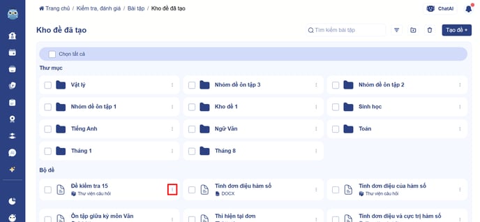 Bước 4: Tạo bộ đề và giao bài tập cho học sinh