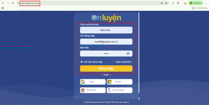 - Thầy cô mở trình duyệt Google Chrome, sau đó truy cập vào website: app.onluyen.vn
