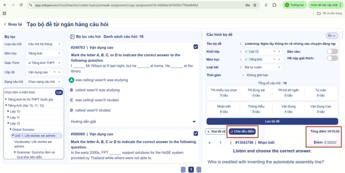 - Thầy/cô kiểm tra lại câu hỏi và chia lại điểm cho các câu.