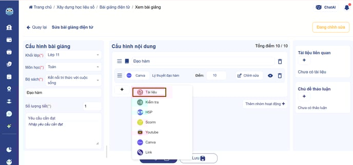 Bước 5: Chọn bài giảng dạng Tài liệu