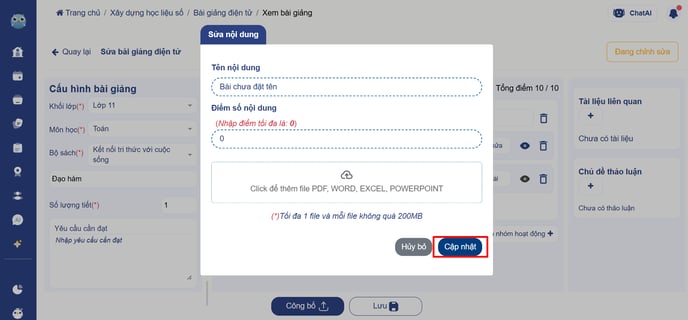 - Sau đó chọn nút "Soạn bài" để đưa file Tài liệu đã biên soạn lên hệ thống