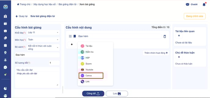Để thêm bài giảng điện tử dạng Canva, Thầy/cô thực hiện theo hướng dẫn trong video sau đây: