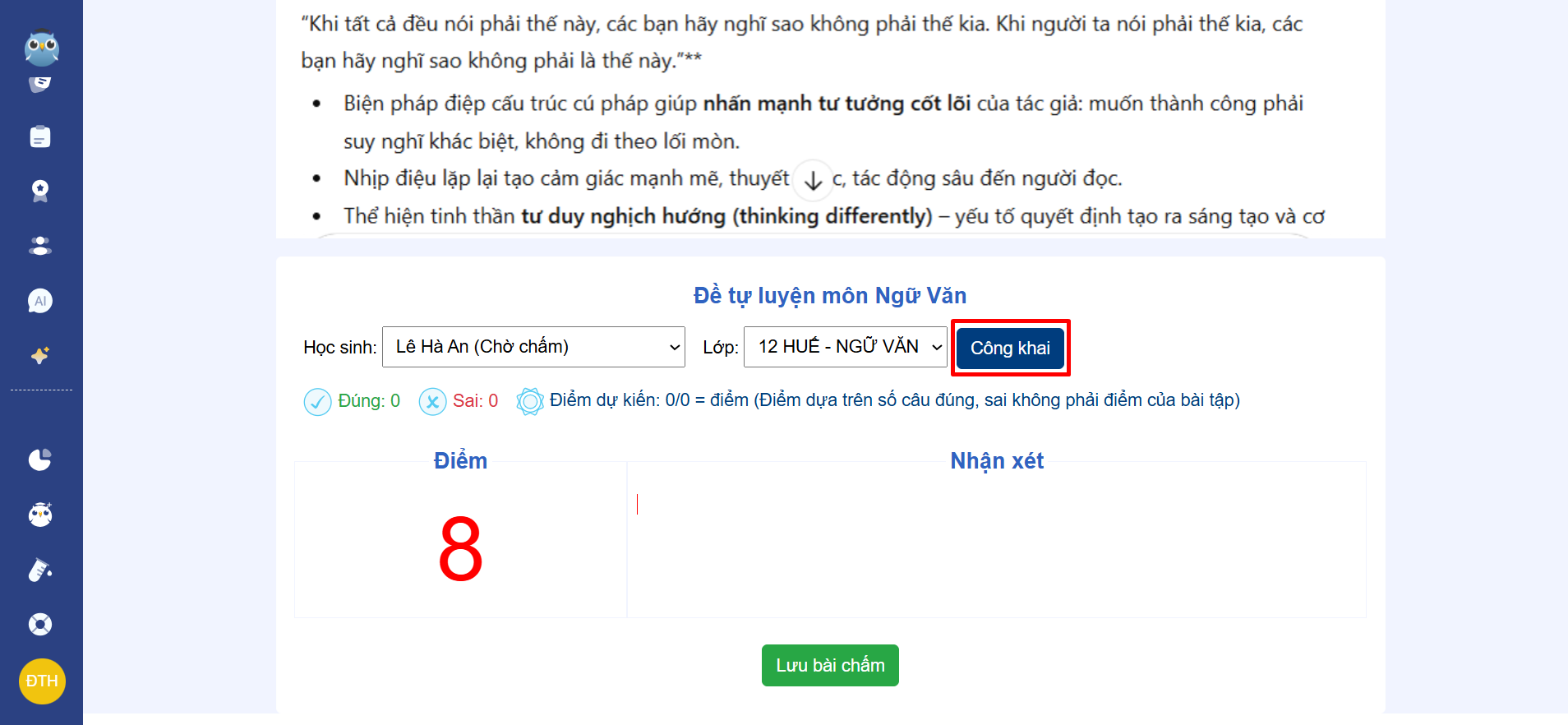 Bước 8: Sau khi chấm bài xong cho cả lớp, Thầy/cô chọn “Công khai”