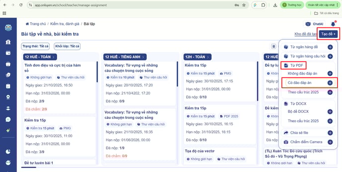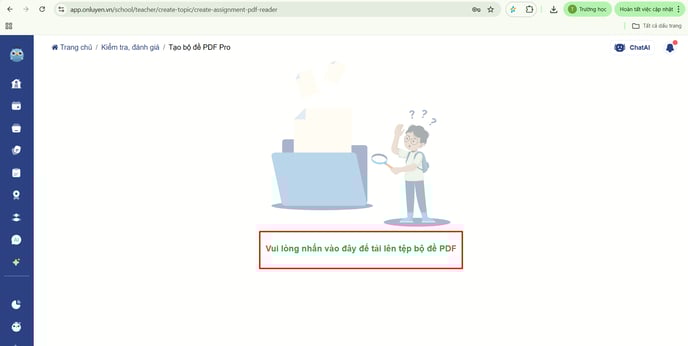 Tại đây, thầy/cô tải bộ đề của mình lên dưới dạng file PDF