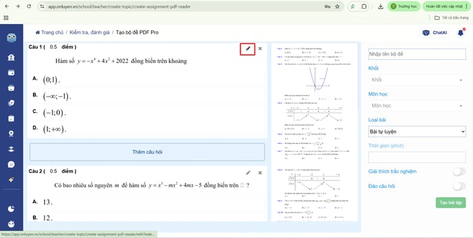 Để chỉnh sửa câu hỏi, thầy/cô tích vào biểu tượng chiếc bút để chỉnh sửa.
