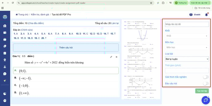 Hướng dẫn Giáo viên tạo đề nhanh từ PDF có đảo đáp án