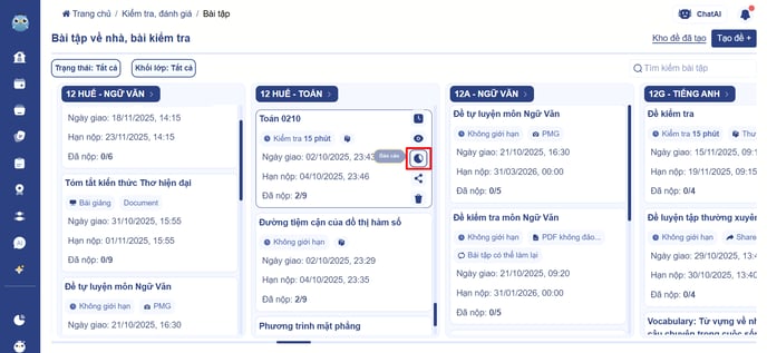 Hoặc thầy cô nhấn trực tiếp vào tên bài tập hoặc nhấn vào biểu tượng báo cáo nằm ở góc phải của bài
