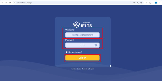 Để tham gia thi IELTS học sinh cần sử dụng máy tính (Ko thi trên điện thoại), dùng trình duyệt Google Chrome đăng nhập tại trang center.edmicro.vn (https://center.edmicro.vn/login) thực hiện theo hướng dẫn sau đây: