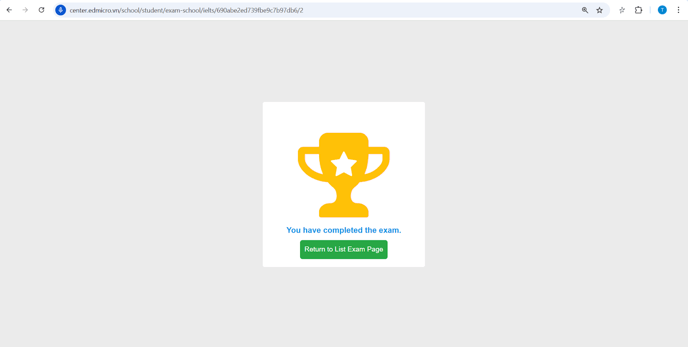 Sau khi hoàn thiện bài thi, học sinh bấm biểu tượng dấu bằng để nộp bài, sau khi nộp bài hệ thống sẽ hiển thị thông báo hoàn thành bài thi