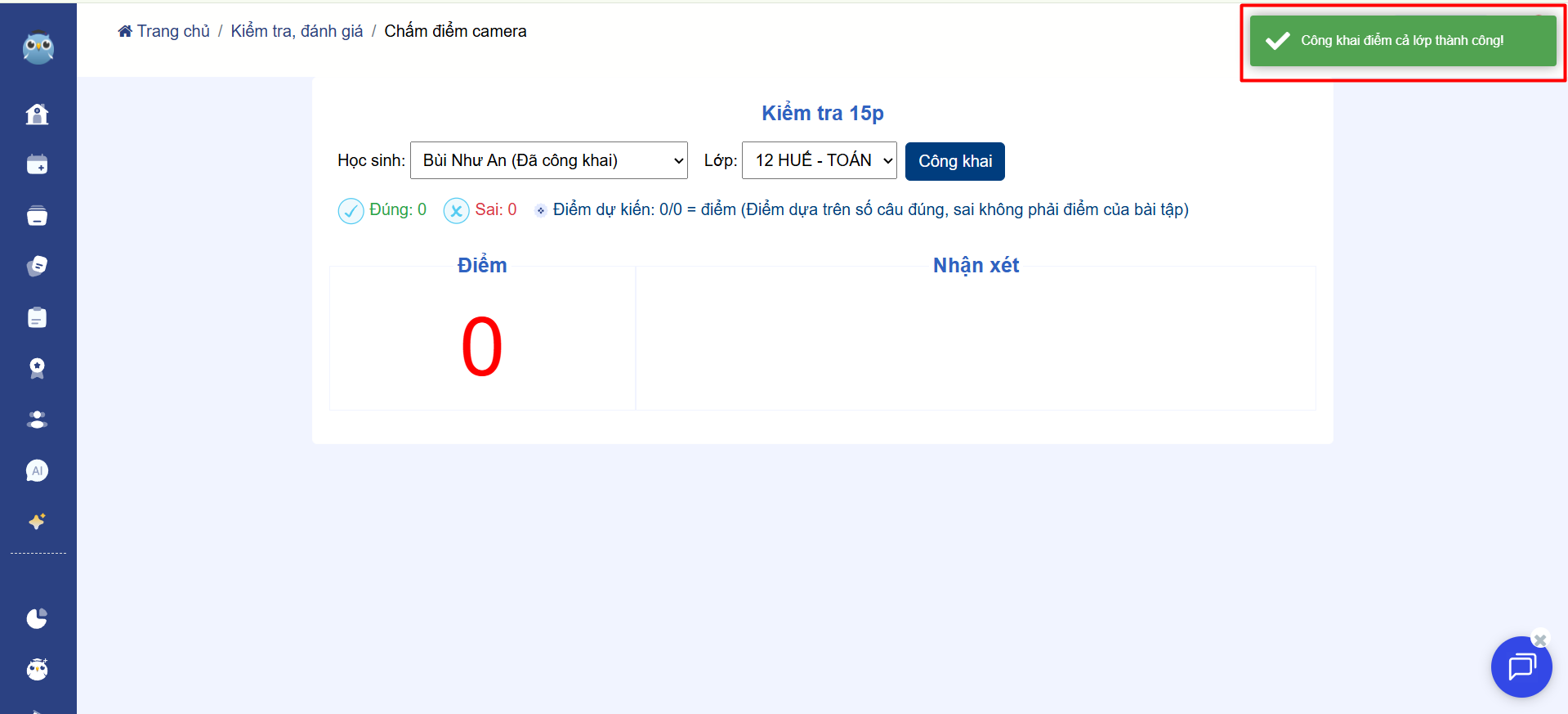 * Thầy/cô có thể quay lại danh sách để tiếp tục chấm bài cho học sinh khác.