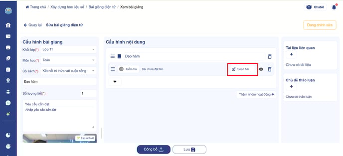 - Sau đó, chọn nút "Soạn bài" để đưa file Tài liệu đã biên soạn lên hệ thống