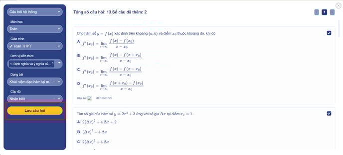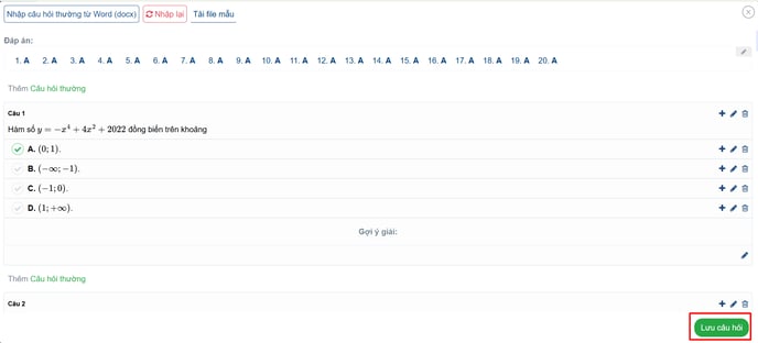 - Tiếp tục, Thầy/cô chọn "Lưu câu hỏi" để hoàn thành quá trình tạo bài.