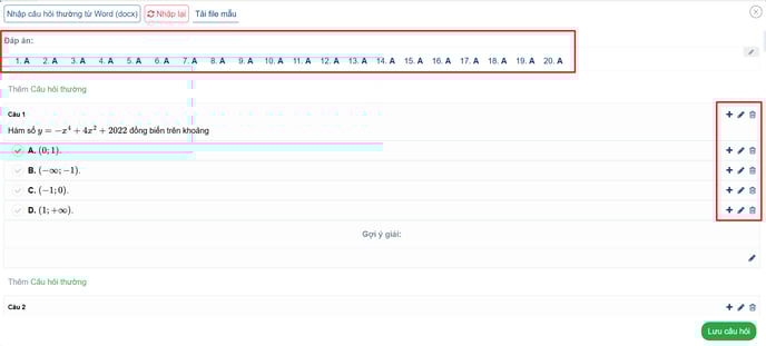 - Sau khi tải file lên, Thầy/cô có thể chỉnh sửa lại câu hỏi và đáp án.