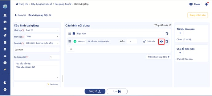 - Thầy/cô có thể chọn biểu tượng hình con mắt để xem lại bài.