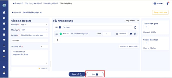 - Cuối cùng, Thầy/cô chọn “Lưu” để hệ thống sao lưu bài thầy cô đã tạo.