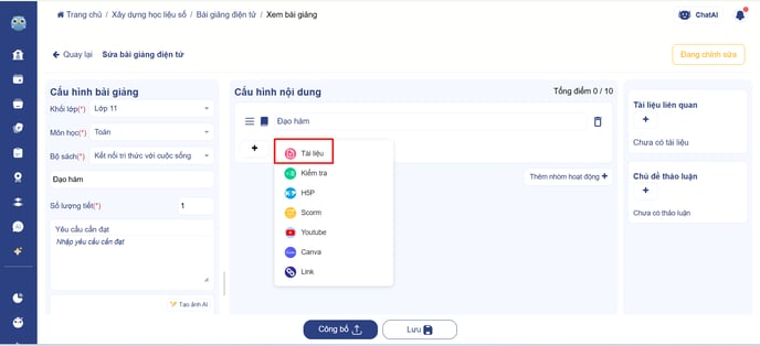 - Thầy/cô chọn bài giảng dạng "Tài liệu".