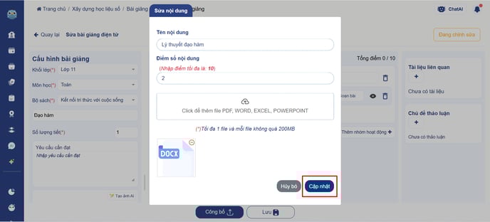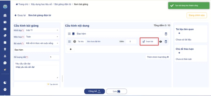 - Sau đó chọn nút "Soạn bài" để đưa file Tài liệu đã biên soạn lên hệ thống.