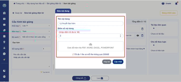 Hướng dẫn giáo viên thêm bài giảng điện tử dạng tài liệu
