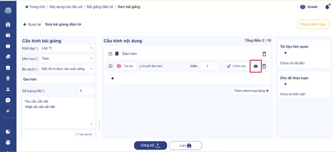 - Thầy/cô có thể chọn biểu tượng hình con mắt để xem lại bài.