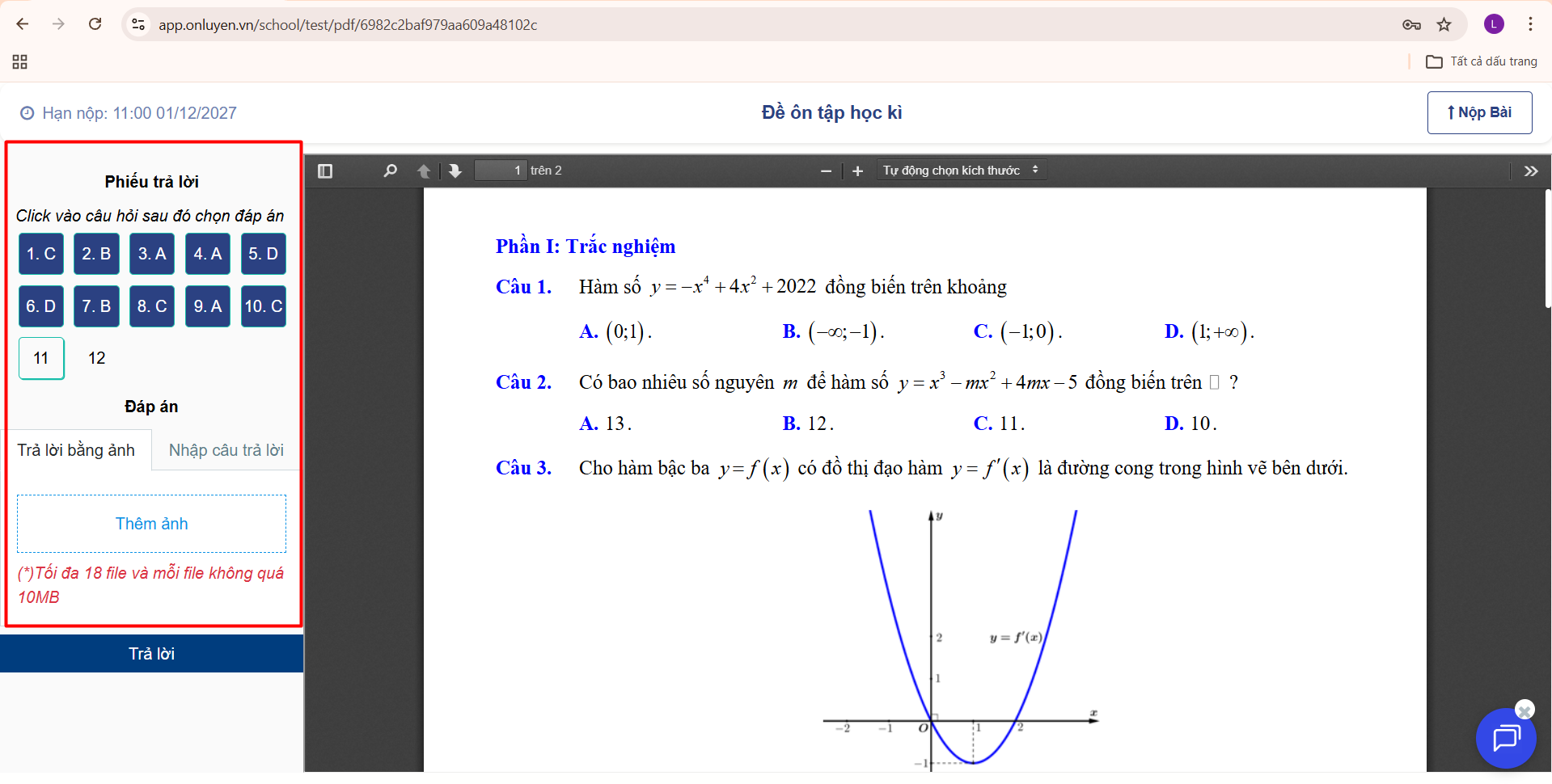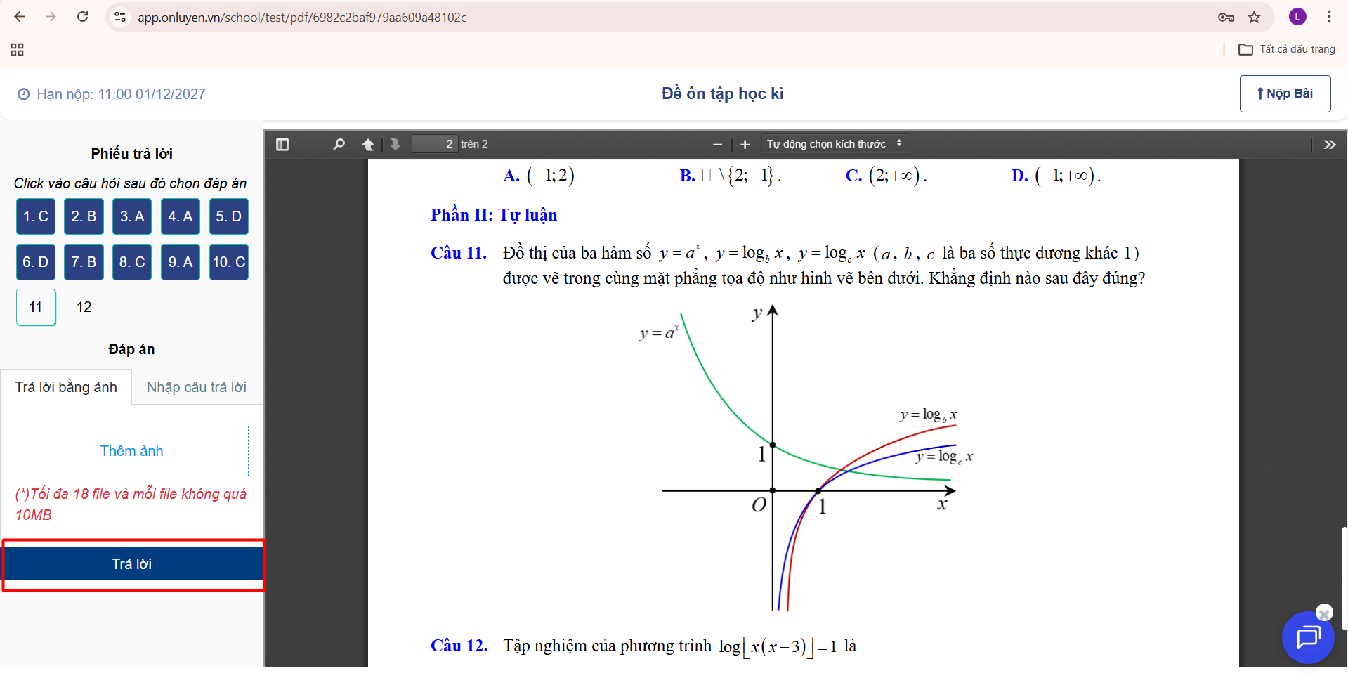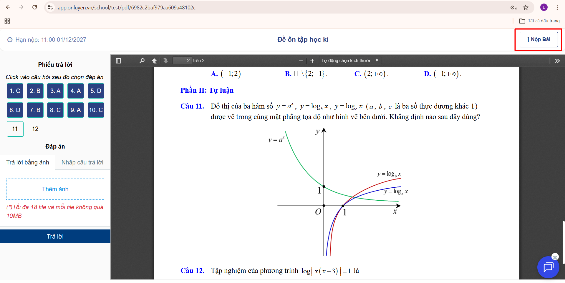 - Học sinh gõ câu trả lời hoặc đính kèm tệp ảnh đối với câu hỏi tự luận..