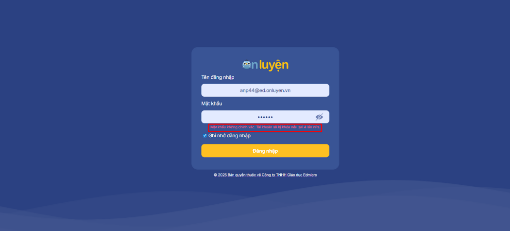 - Không đăng nhập được vào tài khoản: Nguyên nhân là do học sinh quên mật khẩu, nhập sai mật khẩu. Khắc phục: em liên hệ với giáo viên nhà trường để thầy/cô hỗ trợ đổi và cấp mới mật khẩu.
